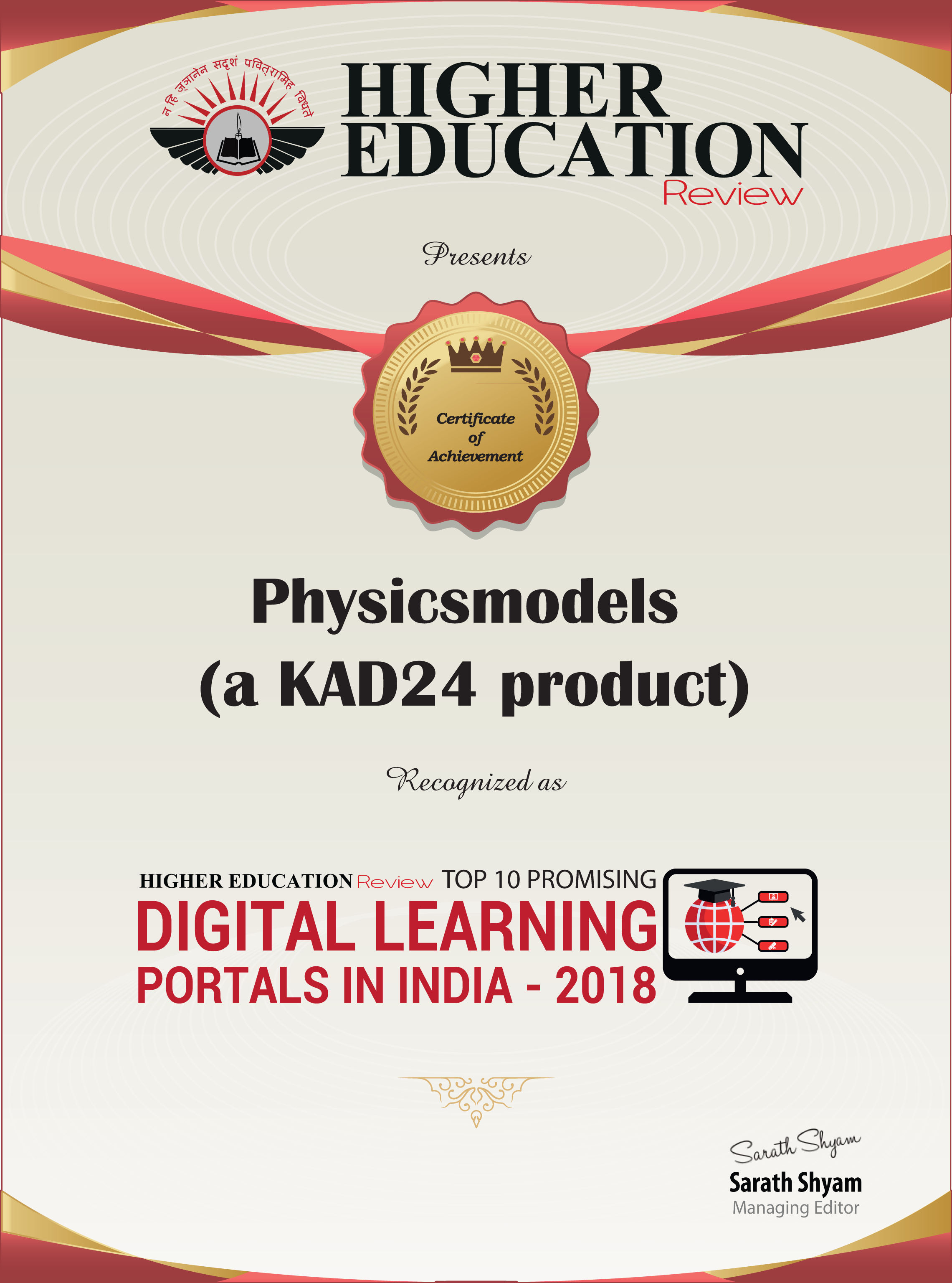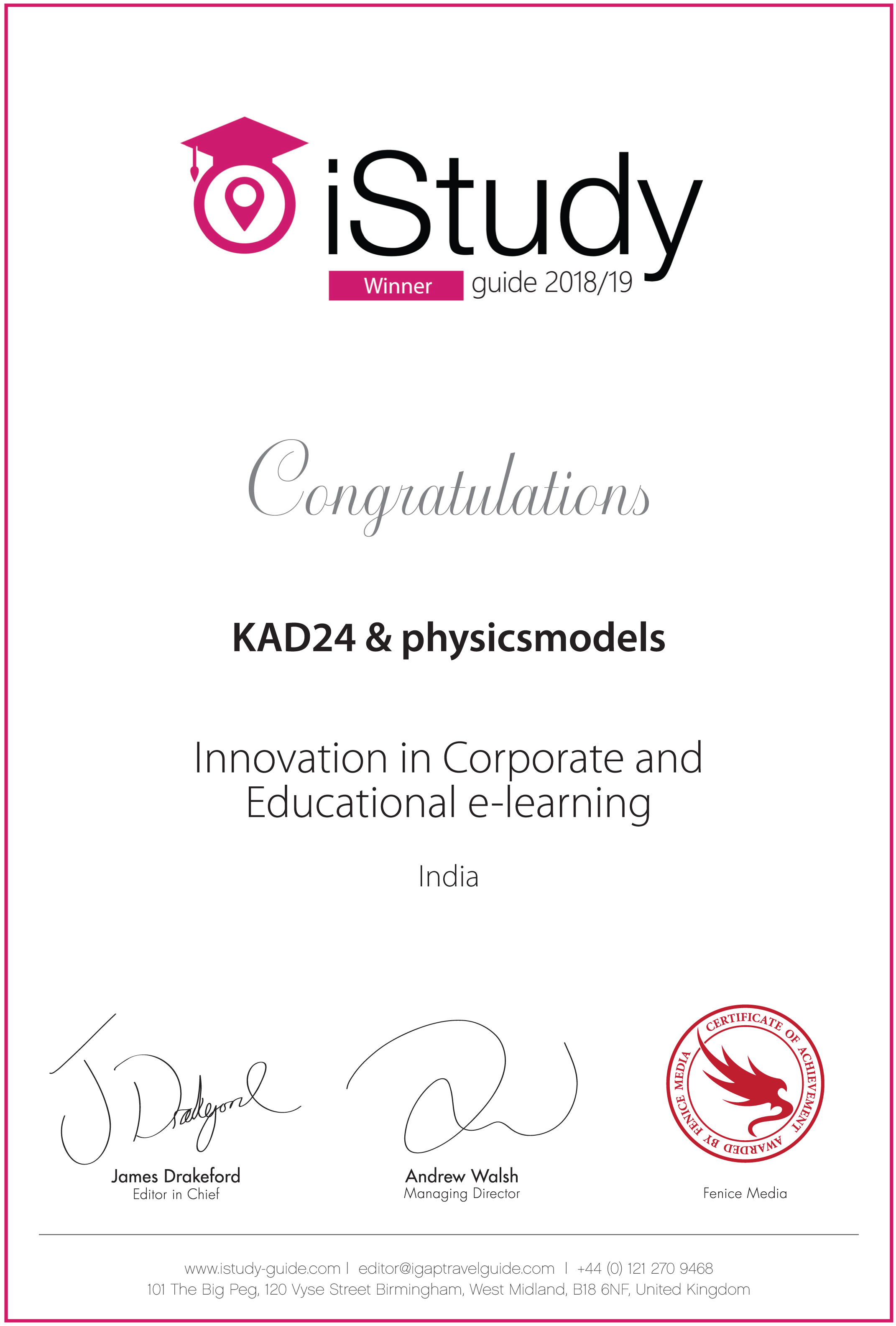 iStudy, UK, a prestigious group, awarded KAD24 and physicsmodels (a KAD24 product) as the winner from India in innovation in e-learning.